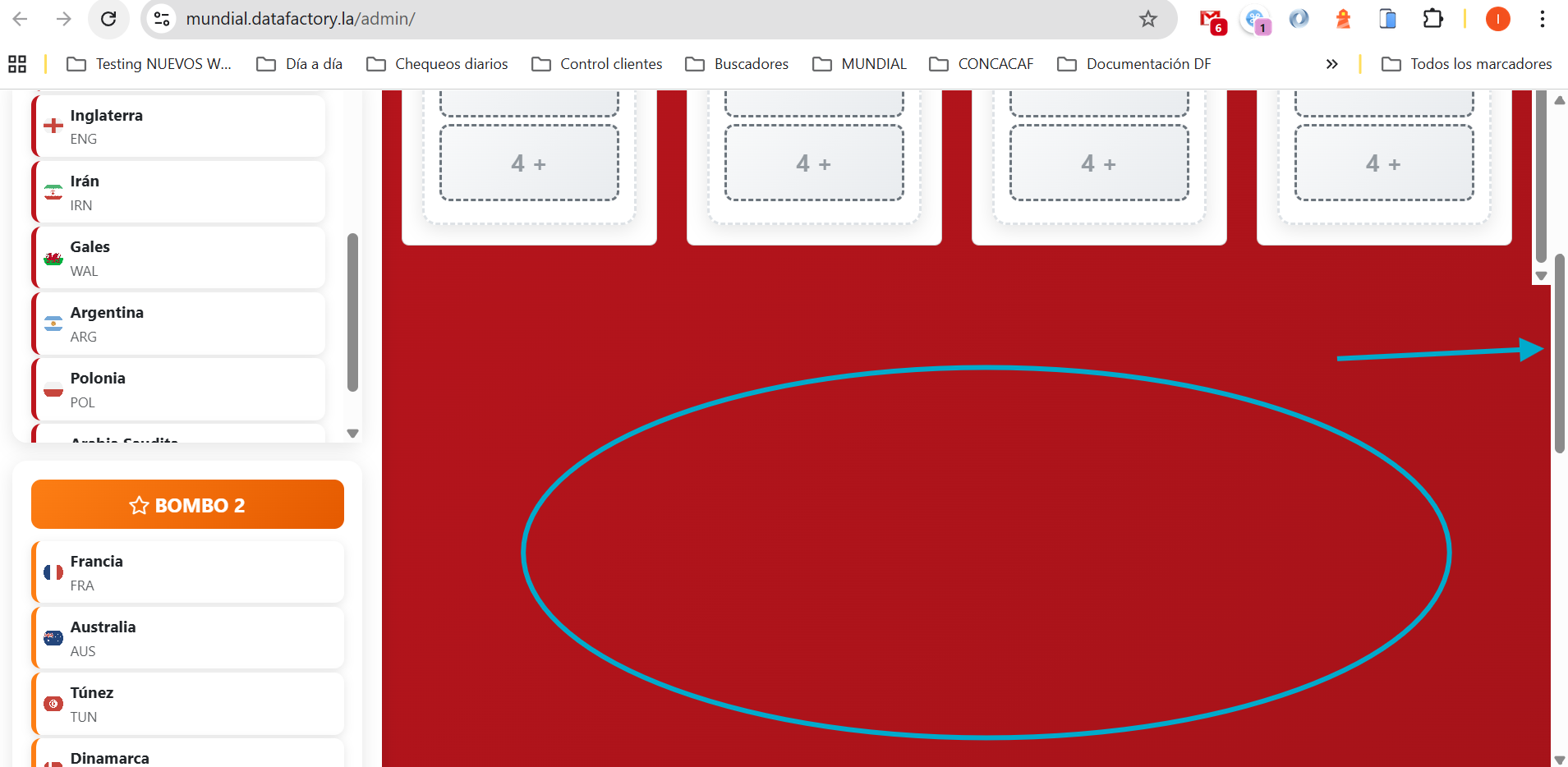 4) Si quisiera mover equipos entre los distintos grupos, normalmente funciona y se ve bien, pero pude replicar (solo en dos ocasiones), que la posición queda sin número. Para hacerme entender dejo la captura (Ver Posiciones sin número)