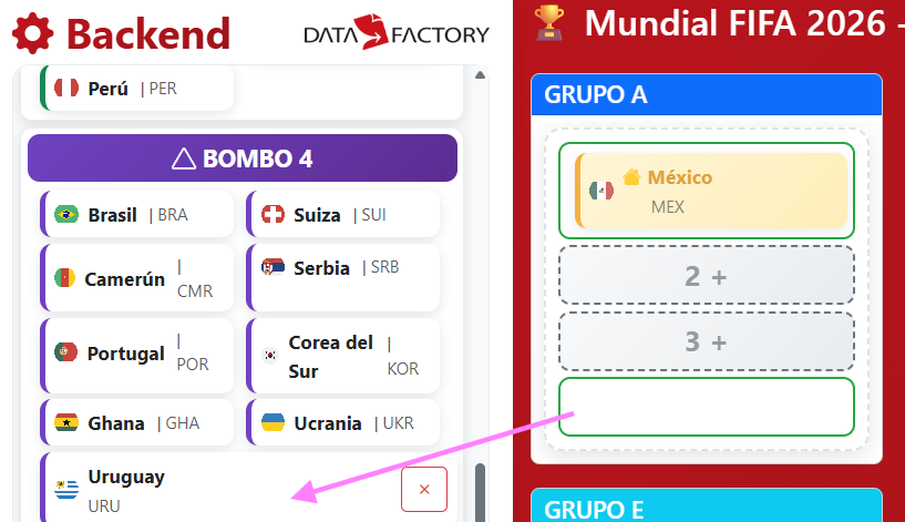 *Aquí, nota que no queda la tercera posición del grupo A vacía, (como sí pasaba antes), sino que ahora queda como seleccionada. (Ver captura de ejemplo: Ejemplo equipo regresado al bombo).