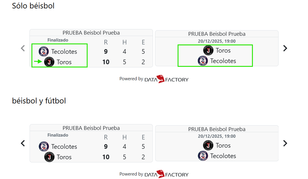 Todo OK con los resultados cargados, tanto en fútbol como en béisbol. OK las actualizaciones.